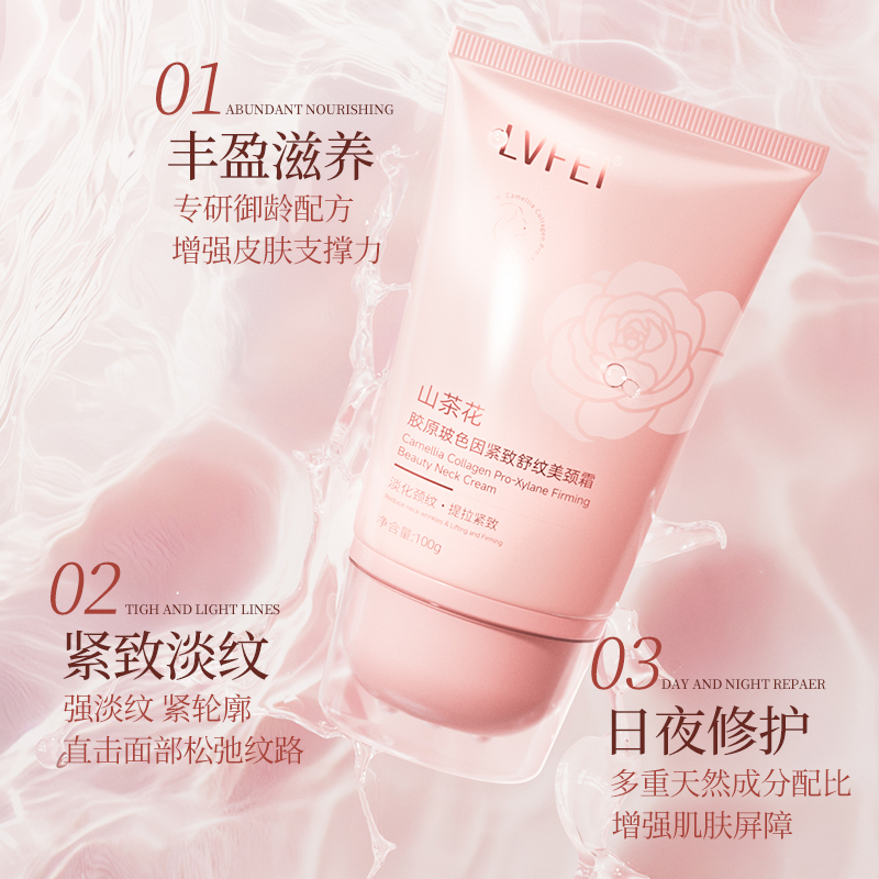 山茶花多肽胶原美颈霜淡纹紧致提拉颈纹淡化玻色因滚珠