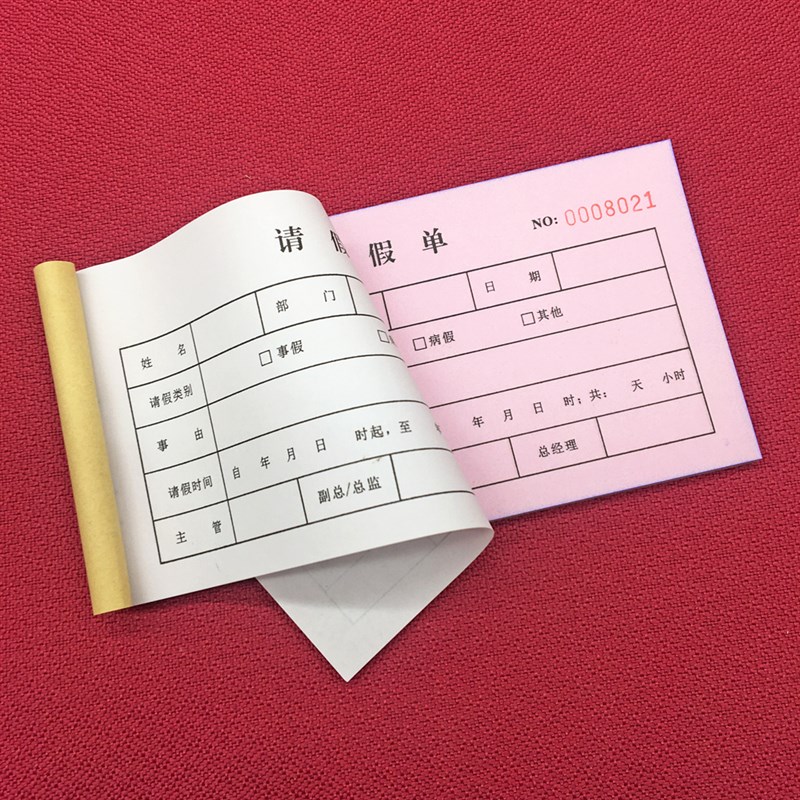 公司员工请假单表格定制印刷定做票本假条审批单二联单据收缺勤表