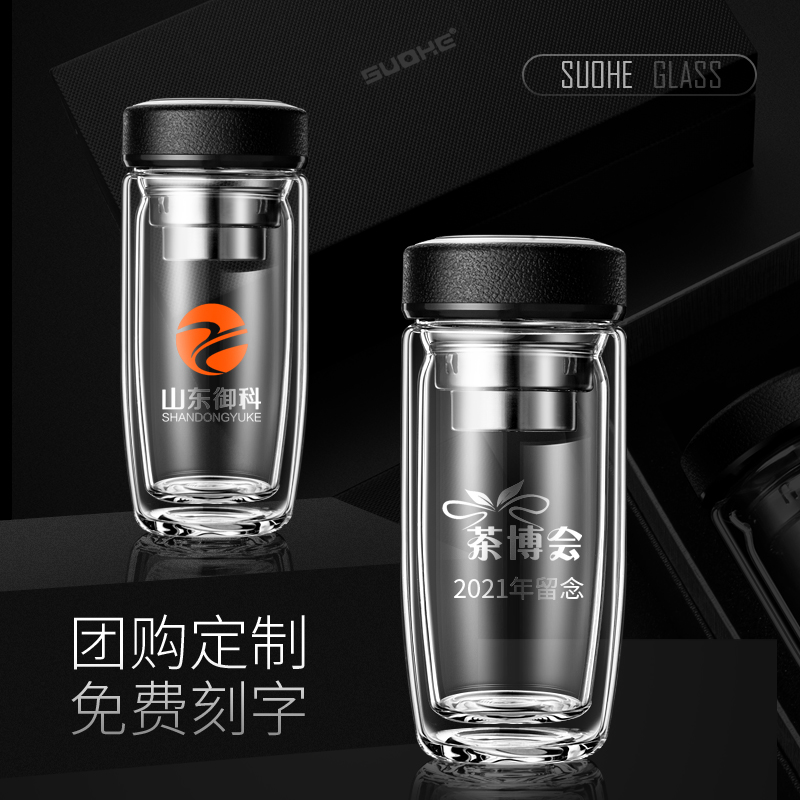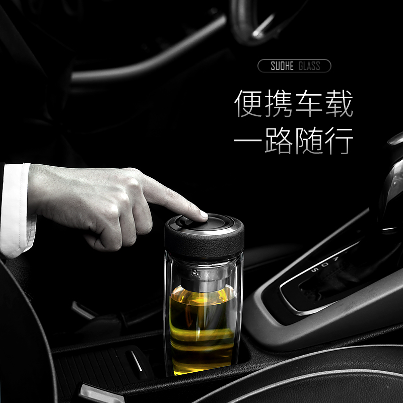 宝选一键开盖水杯车载双层玻璃杯男士泡茶保温速开茶水分离杯茶杯