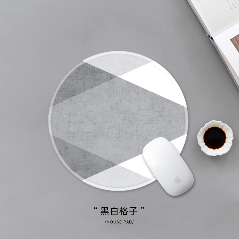 鼠标垫小号24cm圆形个性文艺大理石男女生游戏桌面定制锁边布胶垫