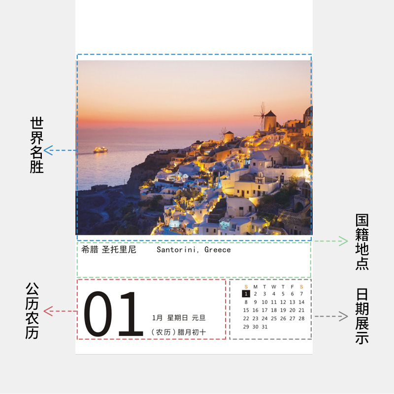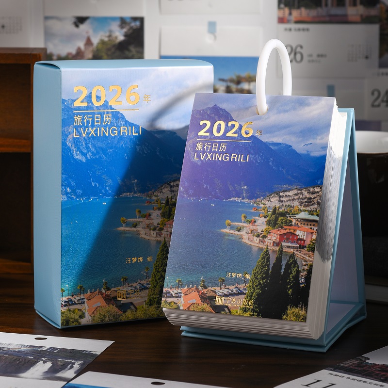 2026年旅行日历新款定制创意风景台历文艺清新ins桌面摆件翻页旅游摄影打卡风景记事单向新年礼物团购台历