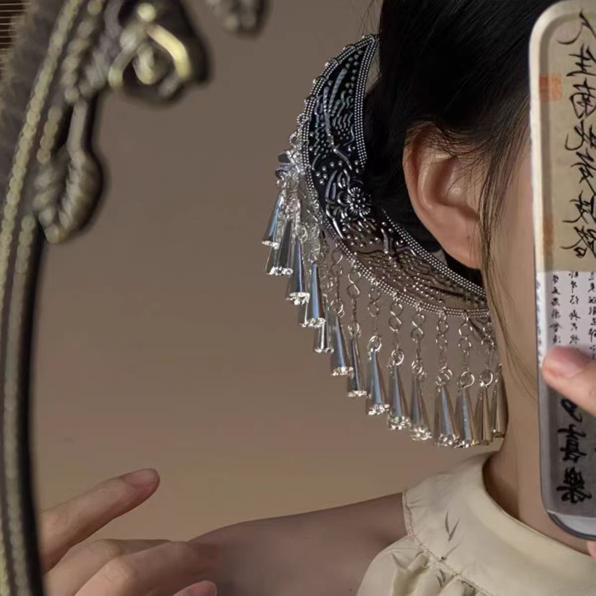 银铃坠梦~民族风头饰月牙流苏发簪女高级感苗族银色发钗簪子发饰