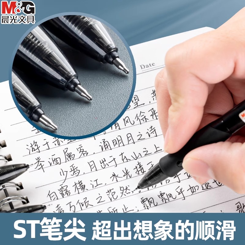 晨光st头按动中性笔0.5速干顺滑刷题笔学生考试用黑色1008升级版高颜值按压式黑笔水笔碳素水性签字笔芯文具