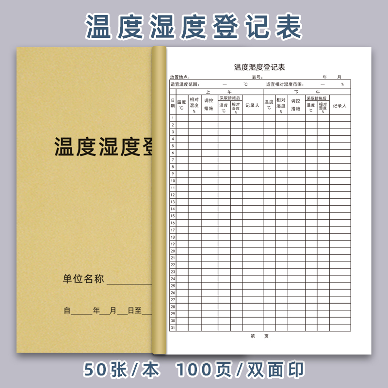 温度湿度登记药房温湿度记录表药房医疗机构冰箱温湿度记录本药房温湿度记录本药房仓库温度管理记录本