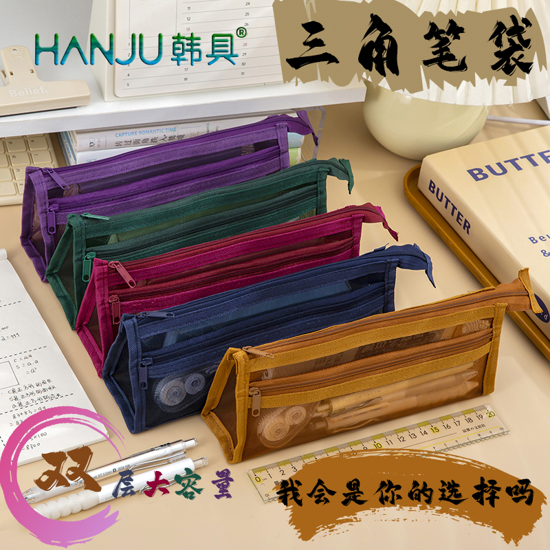 笔袋网纱透明笔袋男孩2025新款女生高颜值考试专用学霸双层大容量女孩小学生文具盒初中小众不撞款定制