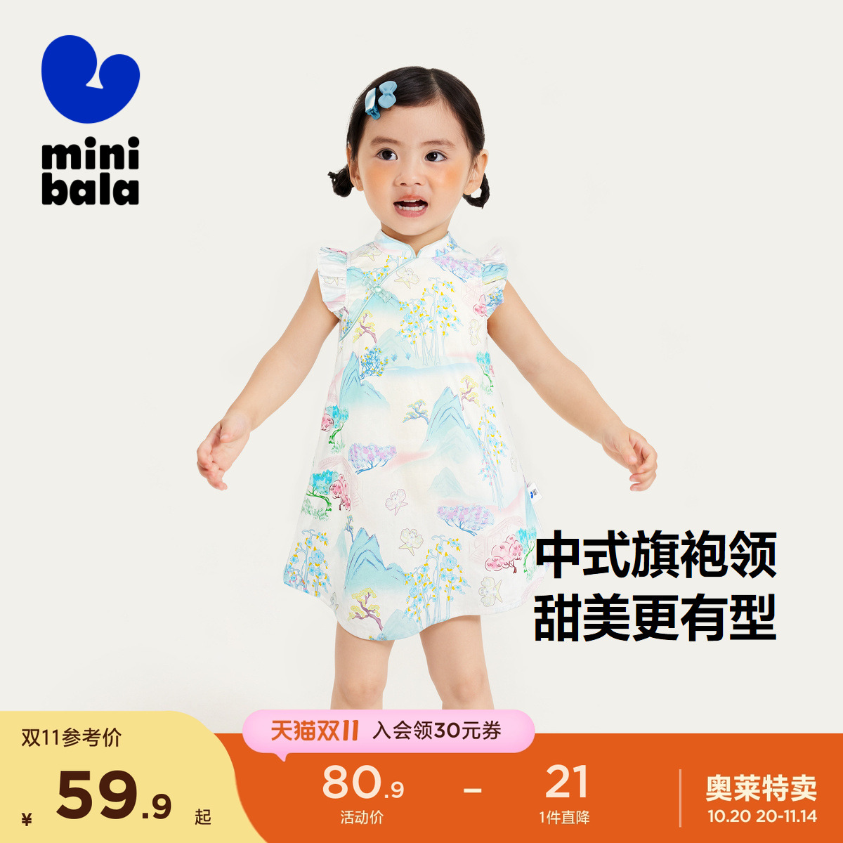 【纯棉国风女童旗袍裙】迷你巴拉巴拉儿童夏季亲肤透气甜美连衣裙