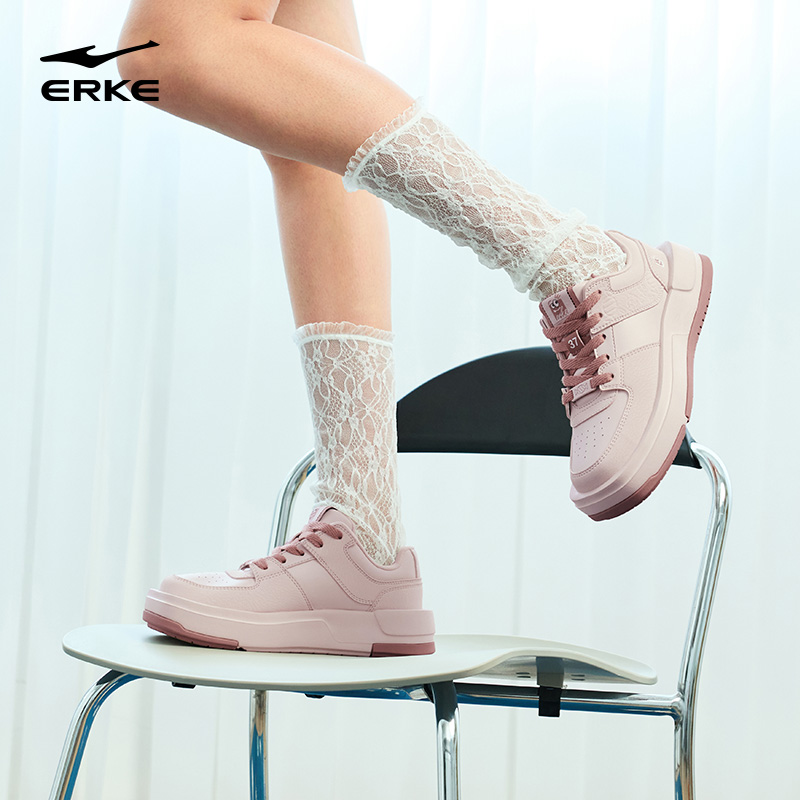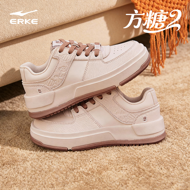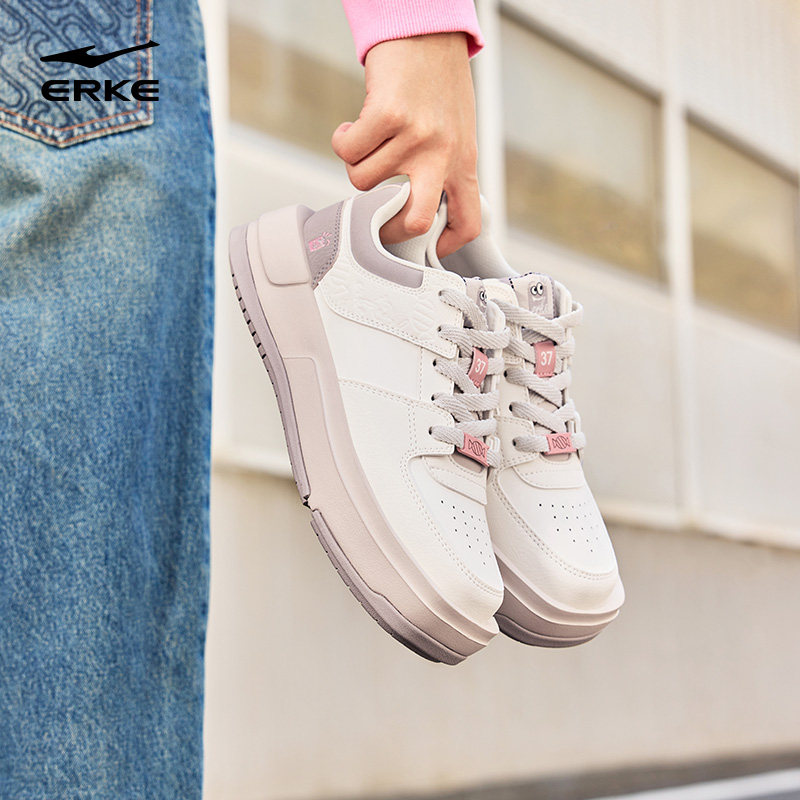元气3鸿星尔克板鞋女鞋秋冬新款鞋子百搭小白鞋皮面厚底鞋运动鞋