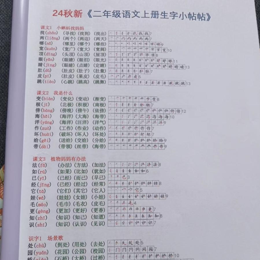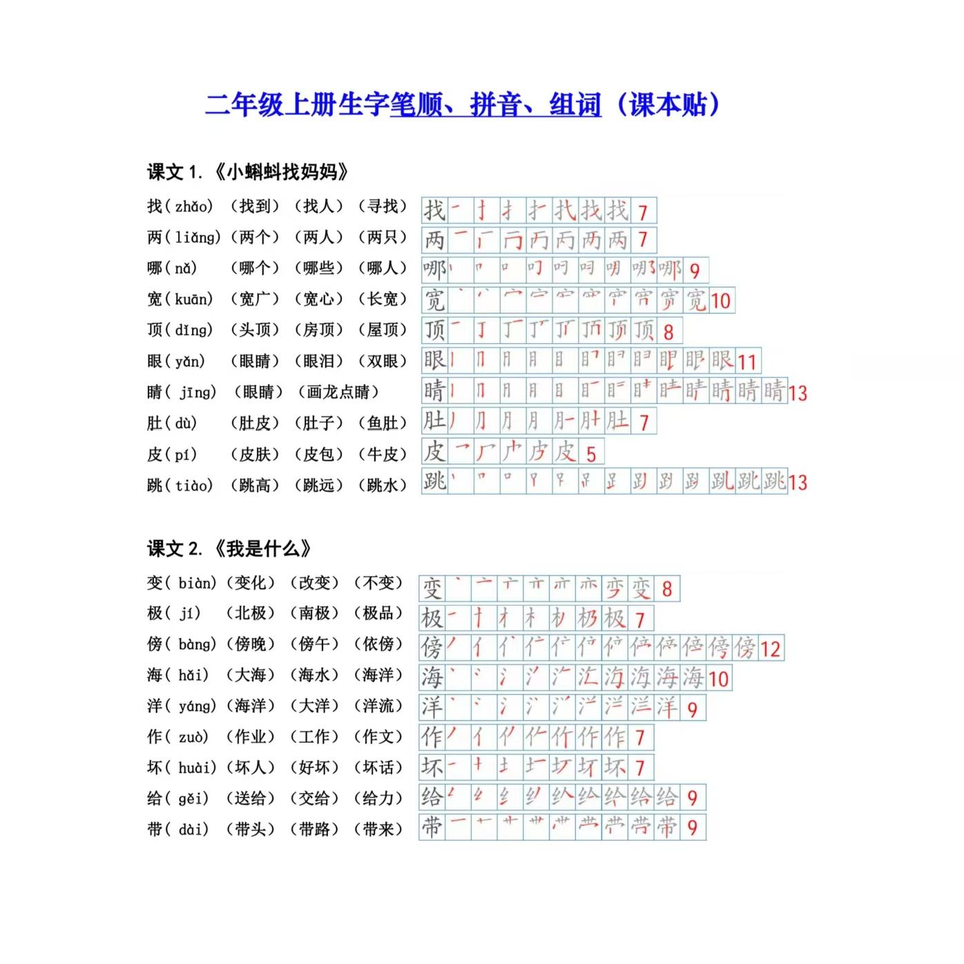 新版二年级上册语文生字组词课课贴小蝌蚪找妈妈每课生字课本贴