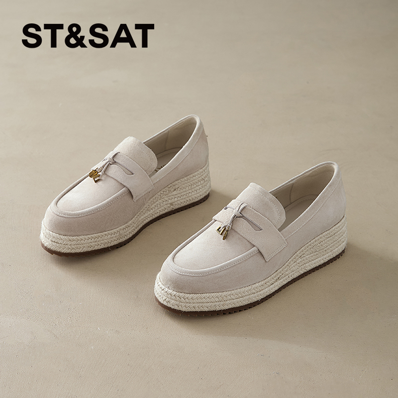 【小羊皮!】星期六复古草编厚底棕色乐福鞋女鞋软底不累脚一脚蹬