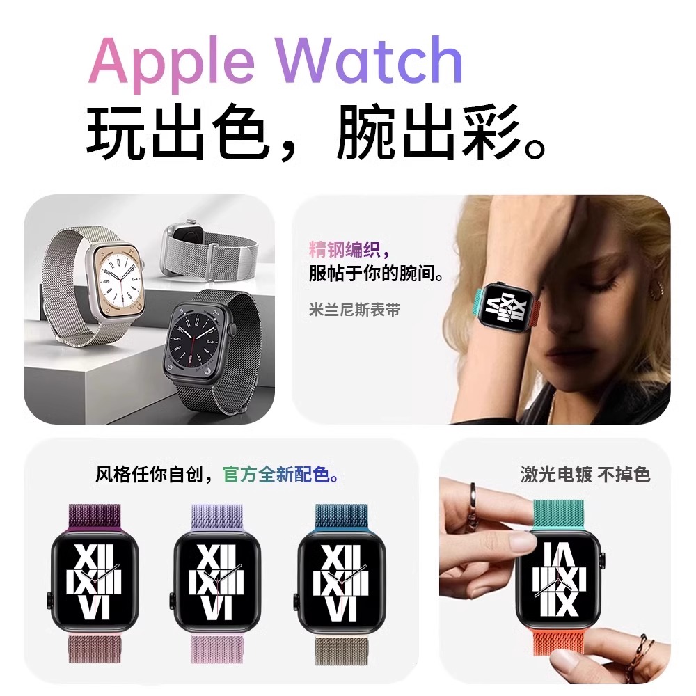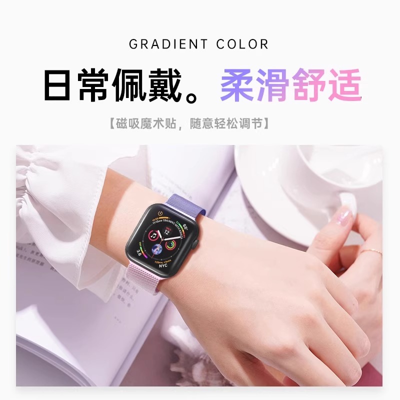 适用苹果s10手表表带iwatch10手表带applewatch9米兰尼斯s987654代se/ultra2金属夏季女新款渐变色男运动透气