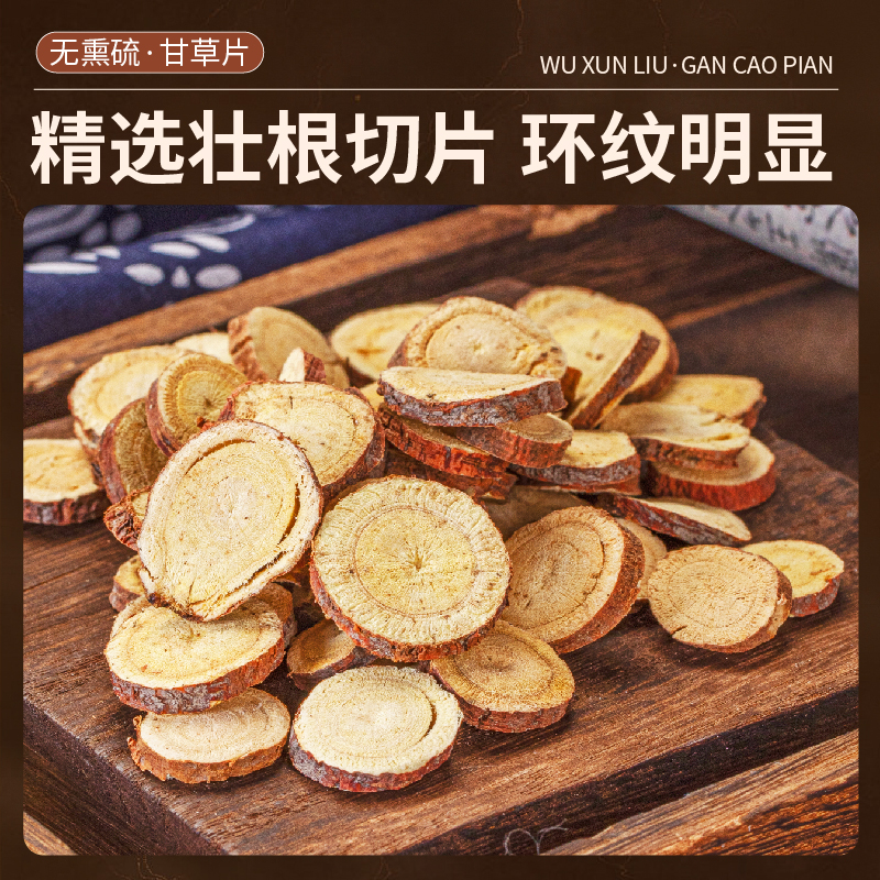 甘肃甘草片泡水500克甘干草片特中药材批发生甘草粉正品茯苓切片
