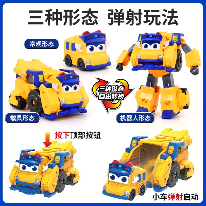 百变校巴弹射变形消防车警长校车救护车哥歌德机器人儿童玩具合体