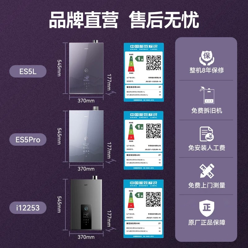 华帝燃气热水器ES5Pro一级能效天然气恒温增压家用官方零冷水253M