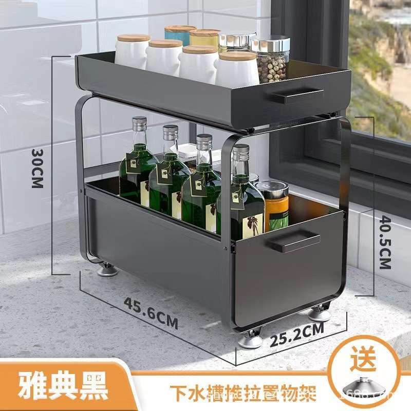 厨房下水槽置物架抽拉式分层收纳架双层橱柜下方调料储物架卫生间