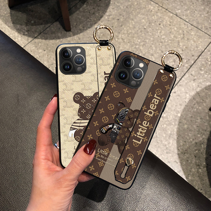 苹果17promax手机壳iphone15外壳Air皮质感13腕带款14plus机械熊12mini斜挎挂绳iphone11保护套16E男女新款
