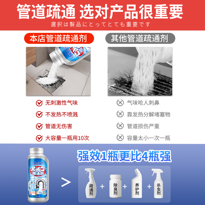 管道疏通剂厨房油污厕所马桶强力通下水道神器卫生间疏通器清洁