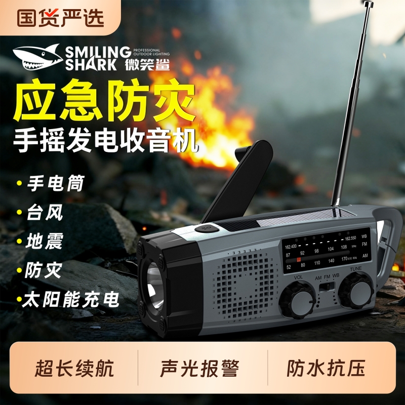 多功能应急手摇发电手电筒收音机战备防灾末日生存装备防水耐用