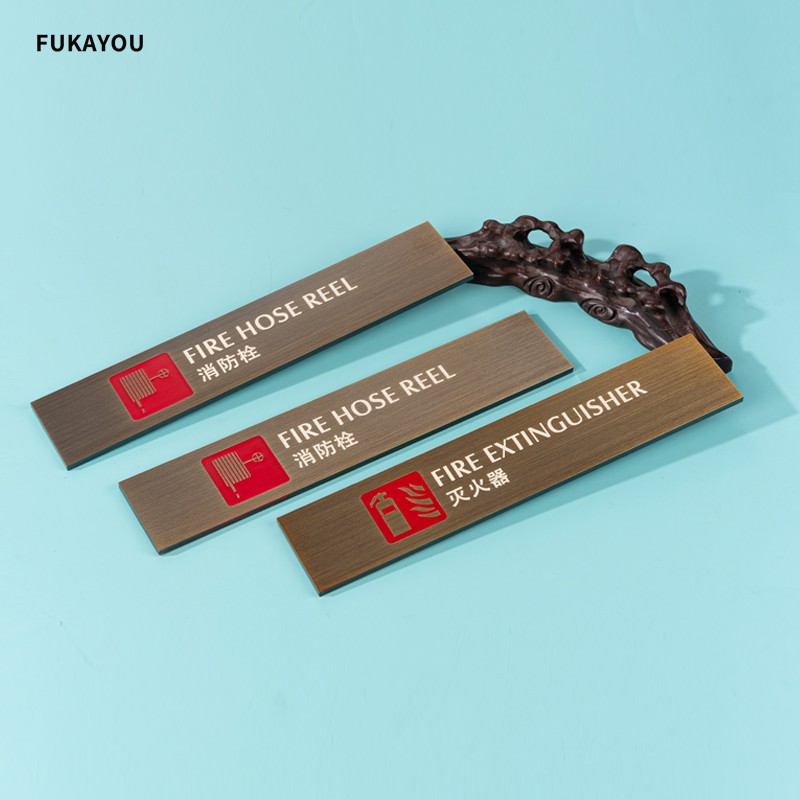 金属不锈钢高档标识牌消防栓消火栓灭火器消防标志标识牌酒店民宿商场公共标志导视logo牌设计定制免钉