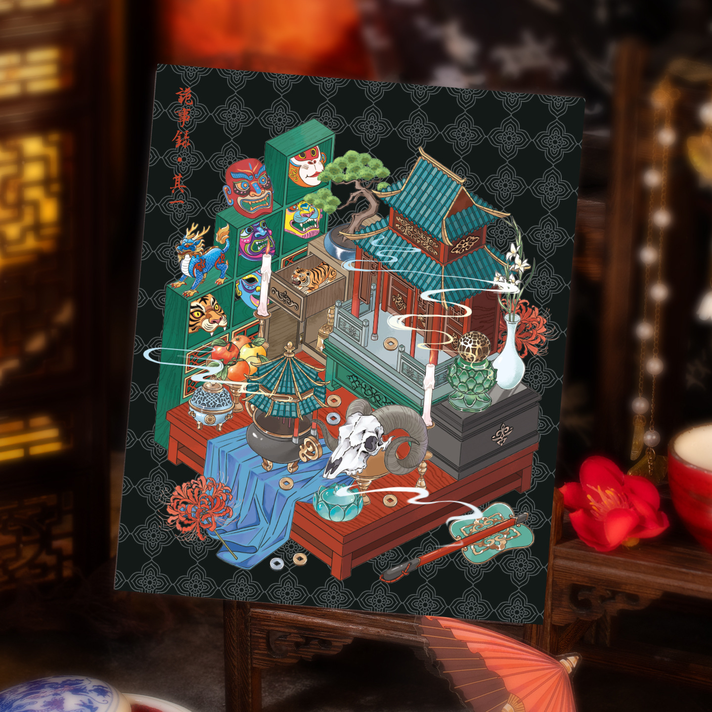 中式微恐造景特油贴纸 诡事录系列 创意防水3D立体贴纸手帐安静书