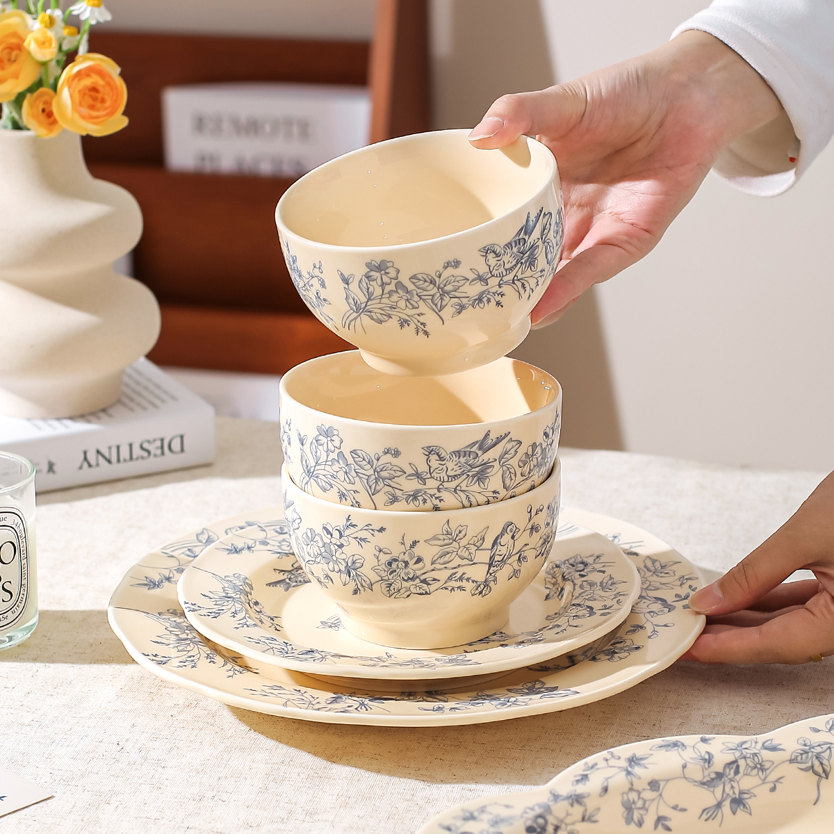 法式奶油风陶瓷碗餐具碗盘套装吃饭碗高颜值轻奢汤碗家用2025新款