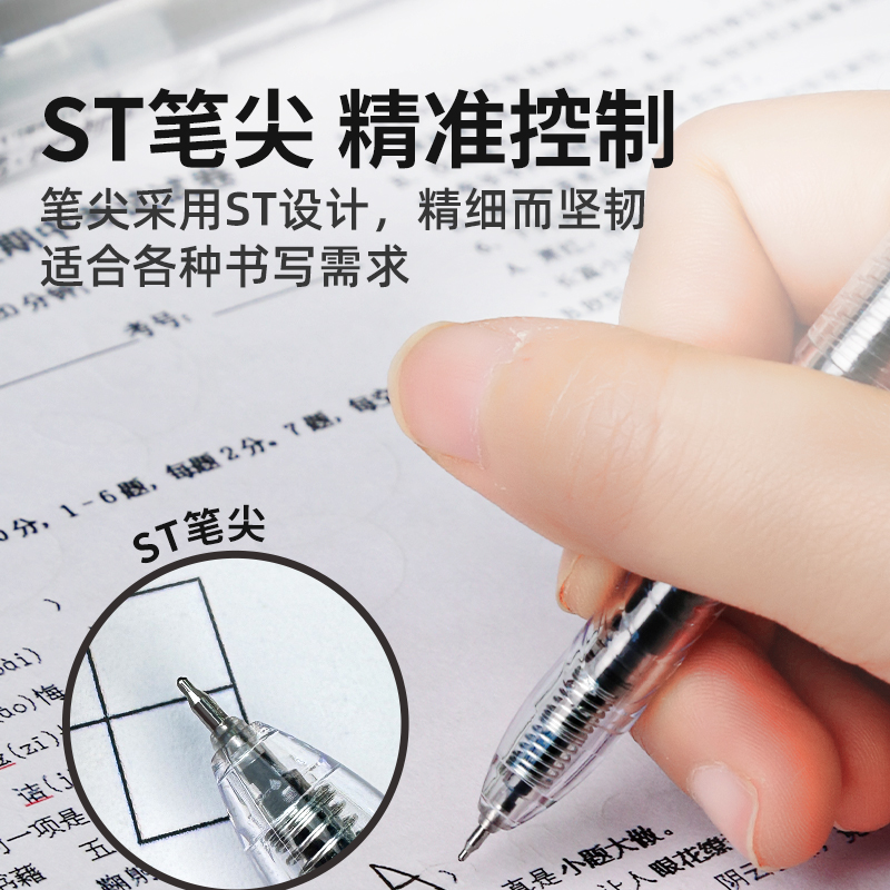 ST刷题笔高颜值按动中性笔圆珠笔黑色水笔小学生专用考试0.5速干碳素笔水性黑笔按压式做笔记签字笔非按斤卖