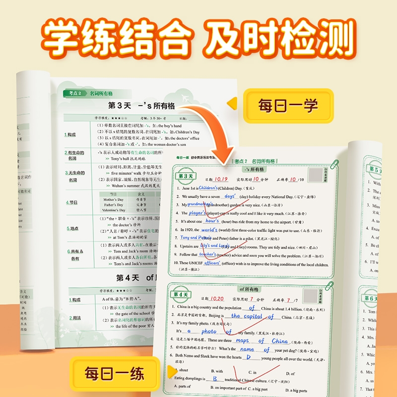 【易蓓】初中英语语法专项每日一学每日一练讲解练习题七八九年级基础练习与讲解习题册1