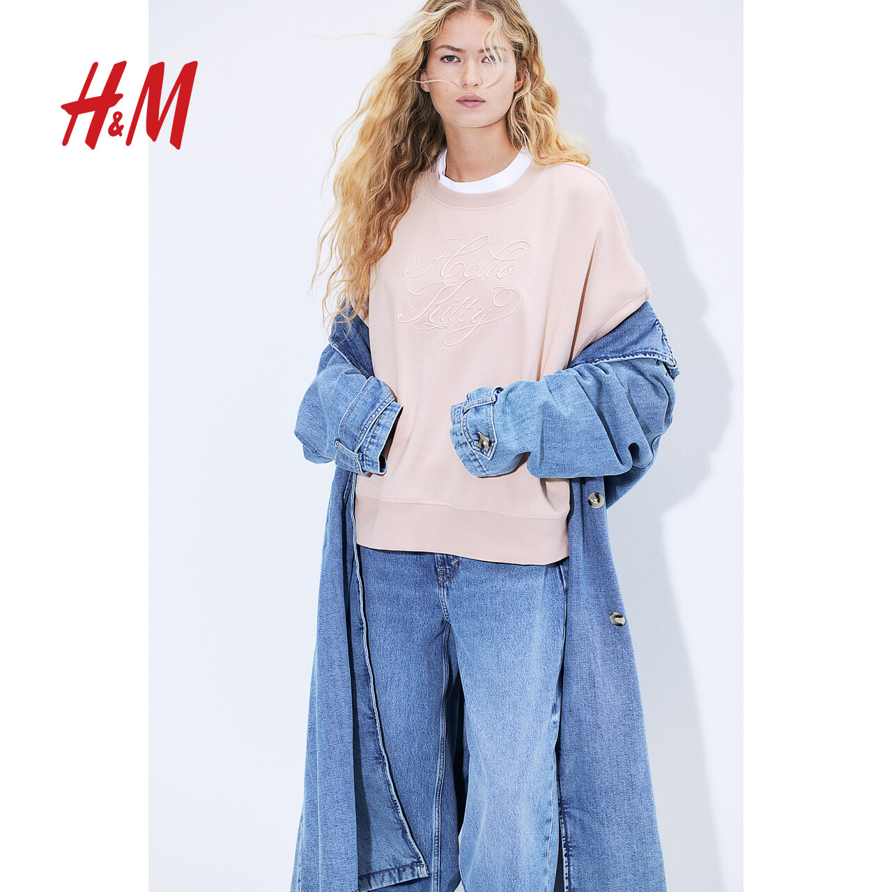 H&M女装卫衣秋季柔软大廓形印花长袖上衣1242033
