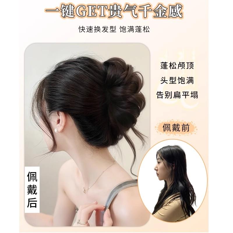 丸子头假发圈女新中式千金花苞头人发高颅顶抓夹发髻盘发神器发型