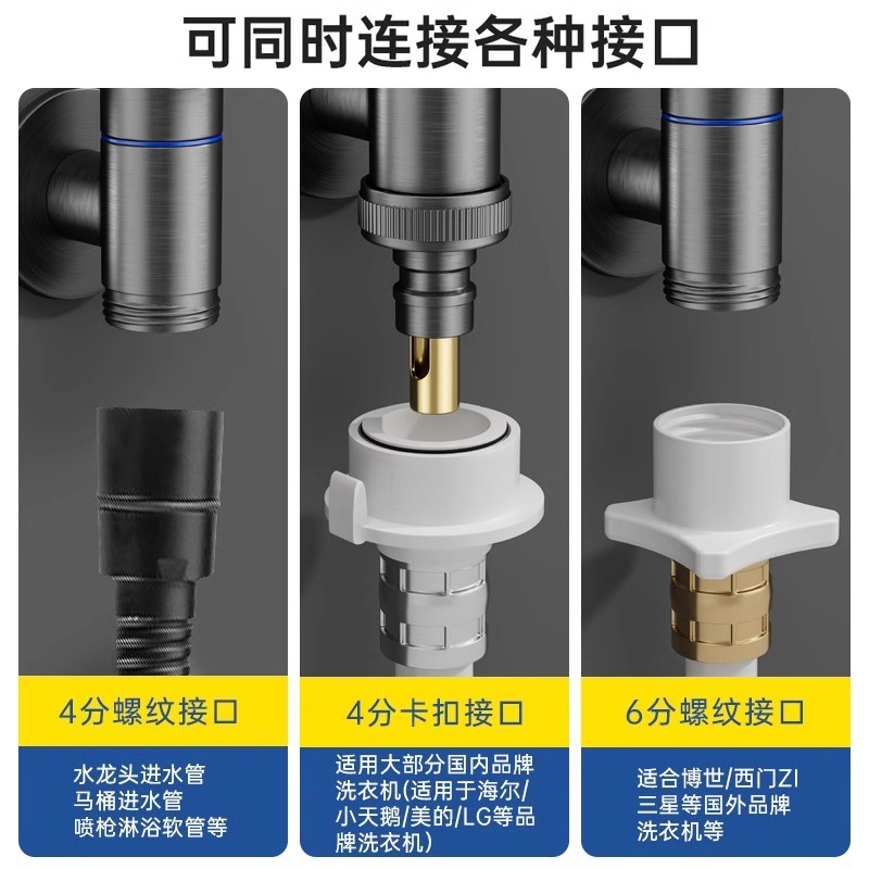 全铜洗衣机水龙头自动止水阀专用卡扣式水嘴接头滚筒自动46分通用