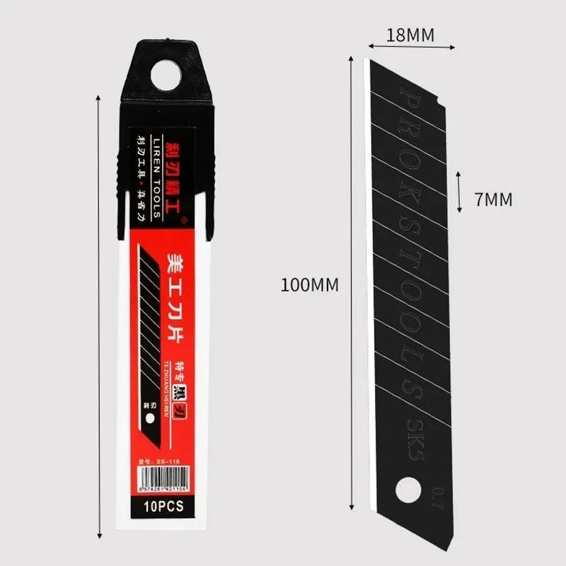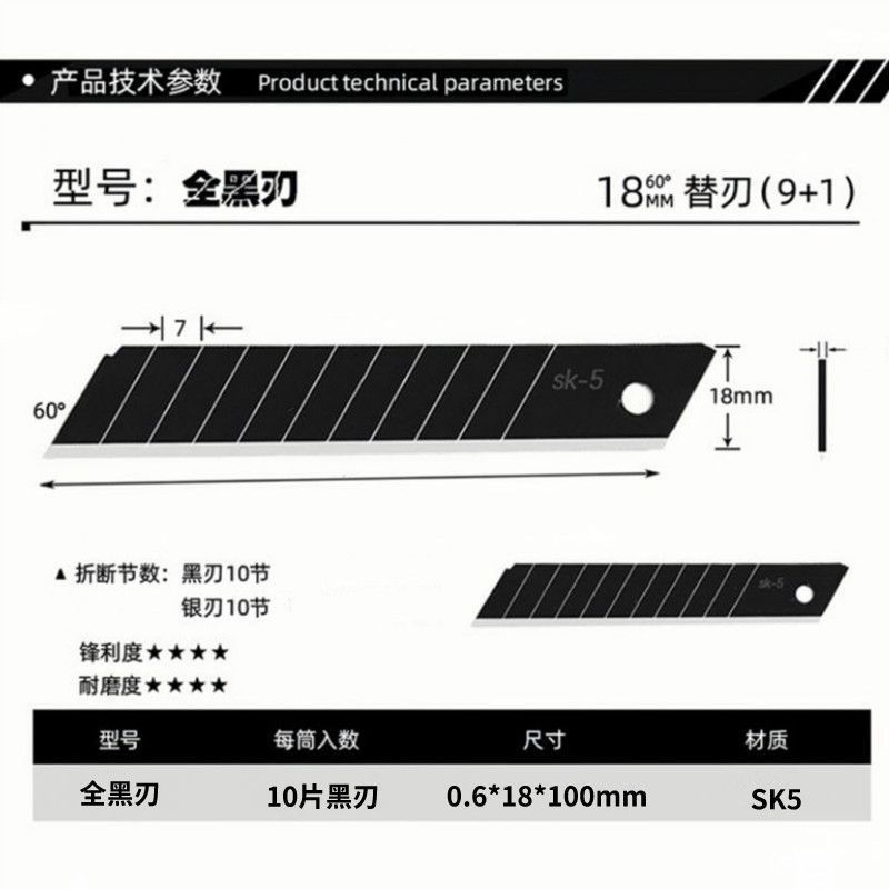 刀片加厚型全黑大号18mm美工刀片锋利高碳钢裁纸墙纸黑刃切割