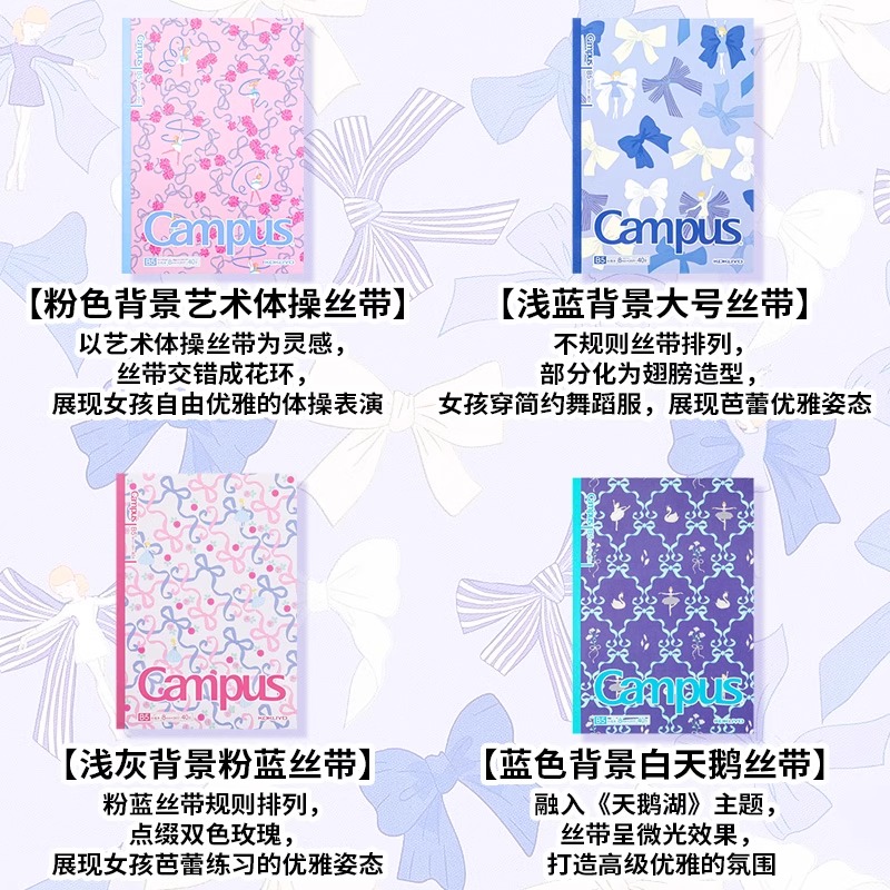 日本kokuyo国誉加藤木系列芭蕾蝴蝶结新款Campus笔记本B5无线胶装本不易洇墨学生用记事本进口纸张高颜值本子