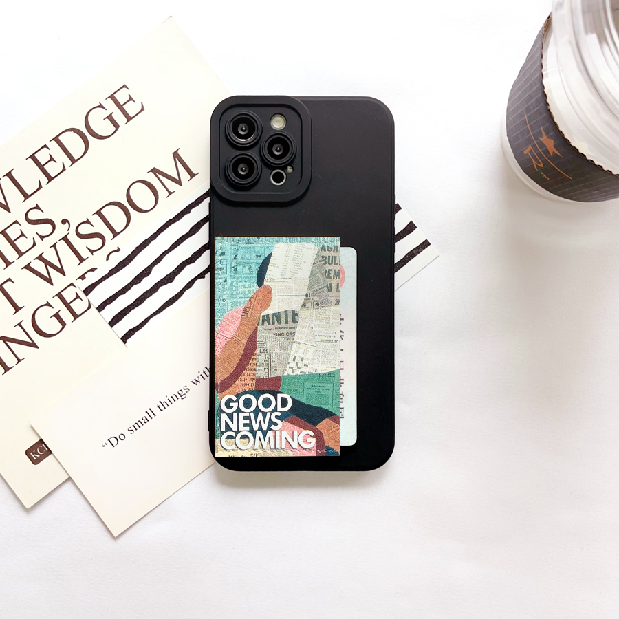 创意侧向插卡手机壳带卡包适用iPhone16promax文艺剪报15pro苹果16门禁身份证背贴卡套14/13/12精孔防摔plus
