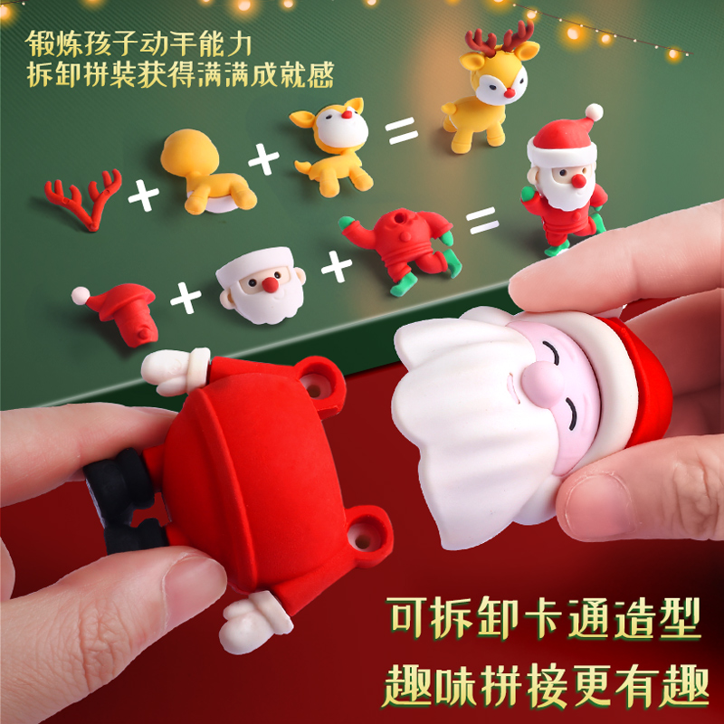 奇好圣诞节创意卡通可爱橡皮擦小学生专用无屑超干净不留痕热可2b4b铅笔橡皮儿童幼儿园专用无毒奖励文具礼物