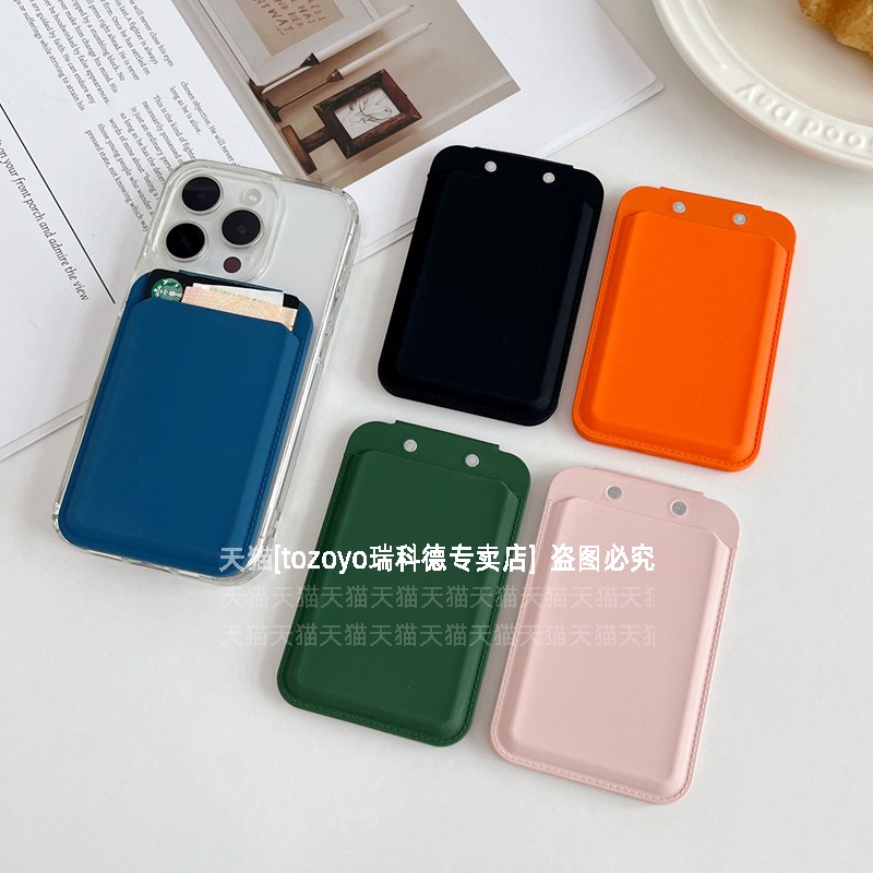 MagSafe带镜子手机磁吸支架硅胶卡包强力引磁环磁力圈可插卡装卡背贴动画弹窗适用iPhone14pro苹果16卡套卡夹
