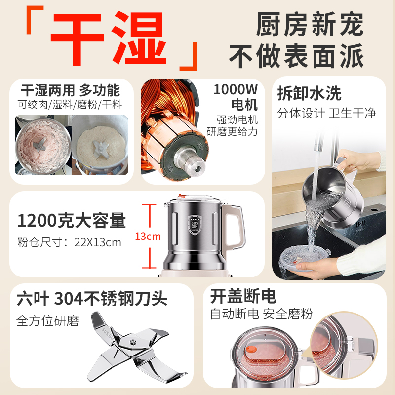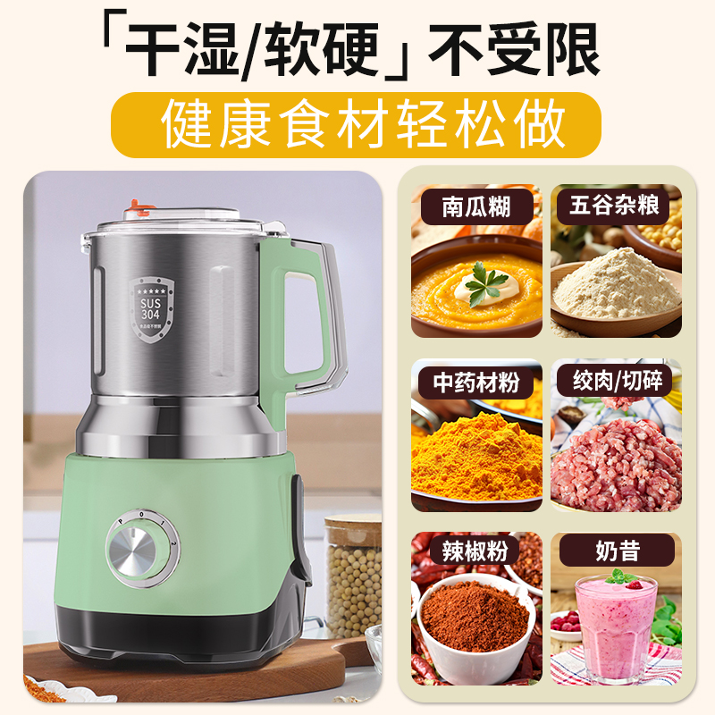 干湿两用研磨机家用粉碎机中药材打粉机五谷磨粉机破壁机开盖断电