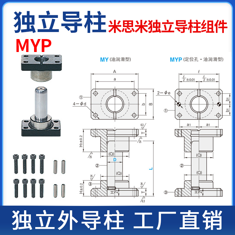 MYP/MYZgP米思米标准独立导柱导套模具滑动外导柱20/25/32/38/50
