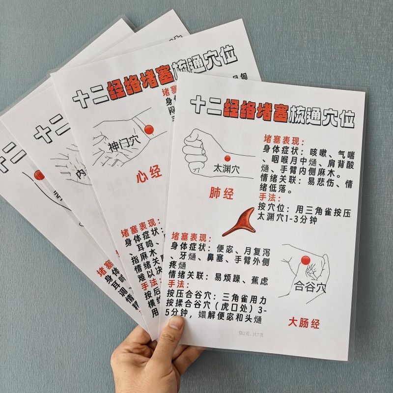 中医12经络堵塞信号大全堵塞对应症状改善疏通按摩手法塑封宣传单