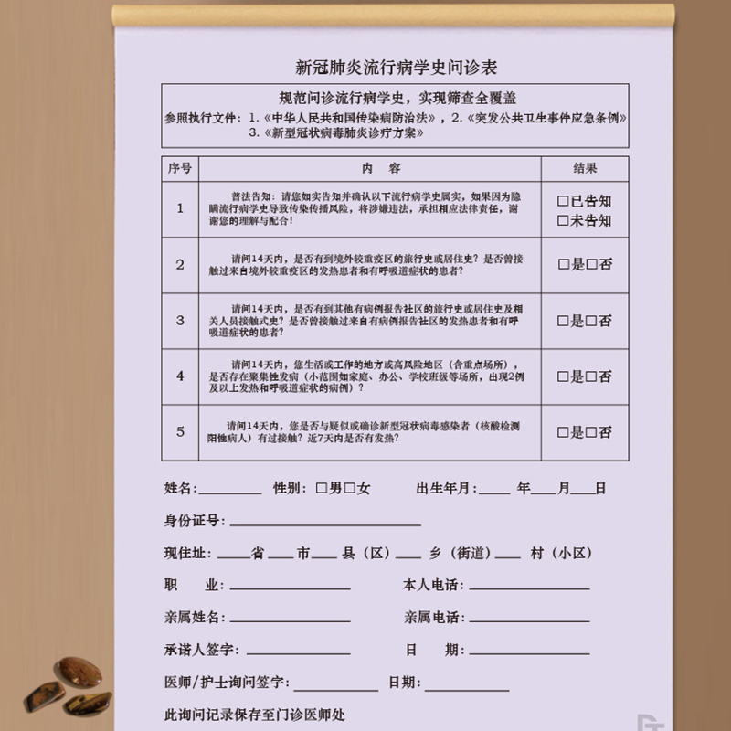 新冠肺炎流行病学史问诊表门诊医院接种疫苗药房药店疫情监控体温登记人员信息登记本行程记录重点排查登记本