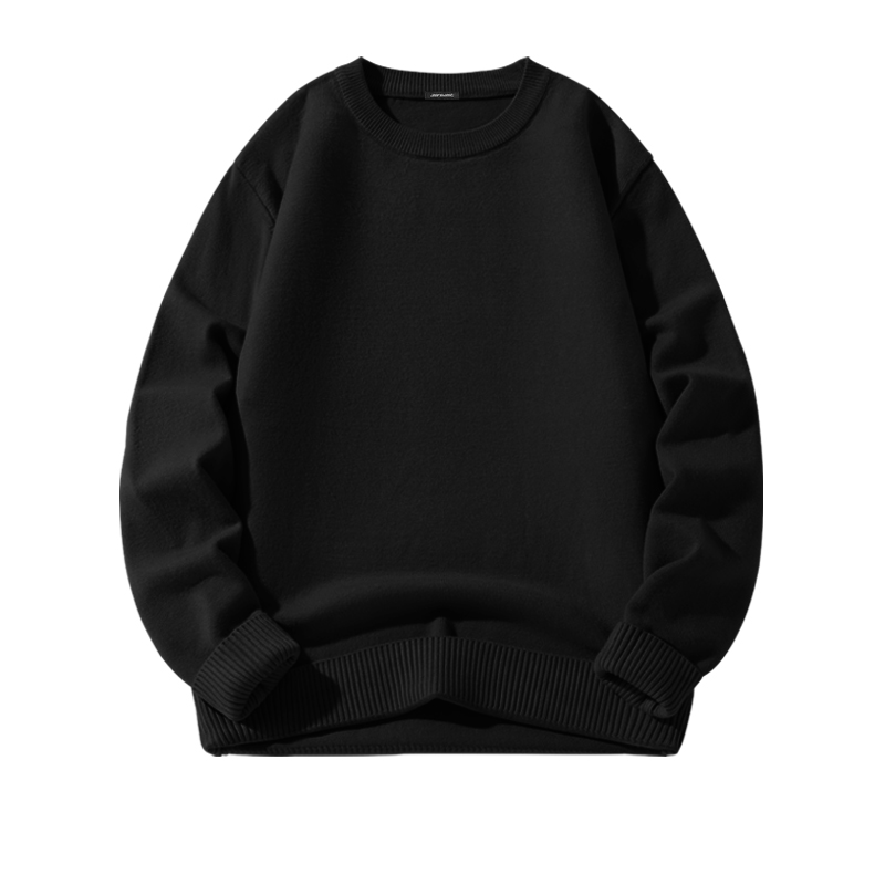 GV真维斯黑色毛衣男秋冬加绒圆领男士打底衫保暖内搭针织衫男款C
