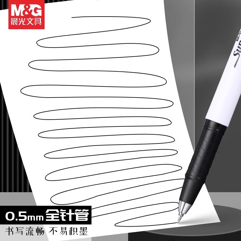 包邮晨光k35按动中性笔水笔学生用考试碳素黑色水性签字笔芯0.5mm
