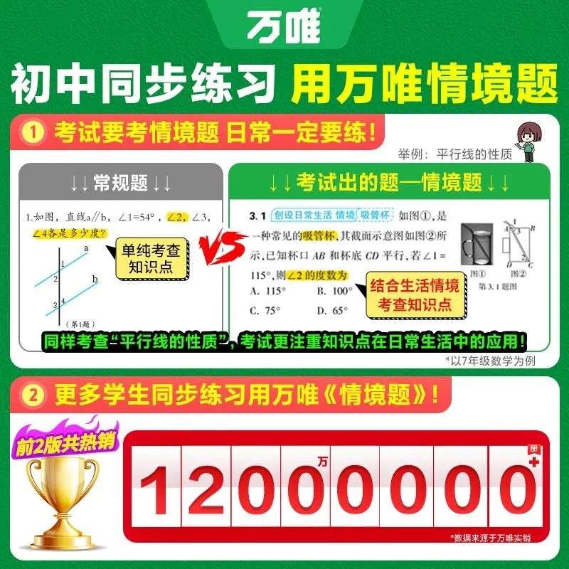 2026万唯同步情境题基础题七八九年级上下册数学英语生政治历史初一初中练习册必刷题万维中考专项训练尖子生新版物理小卷文言文