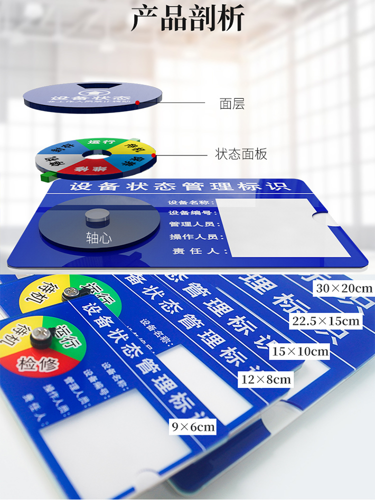 工厂设备机器运转状态标识牌管理贴牌亚克力分区旋转式机器仪器机台故障维修封存运行停机指示牌磁吸式卡定制