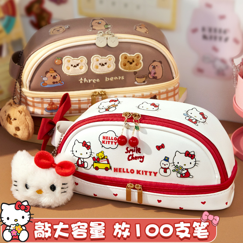猫咪ketty皮质笔袋 女孩小学生2025新款大容量幼儿园高颜值