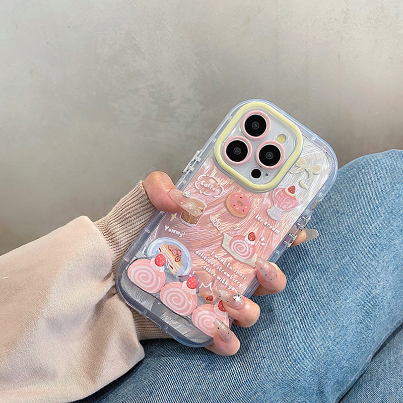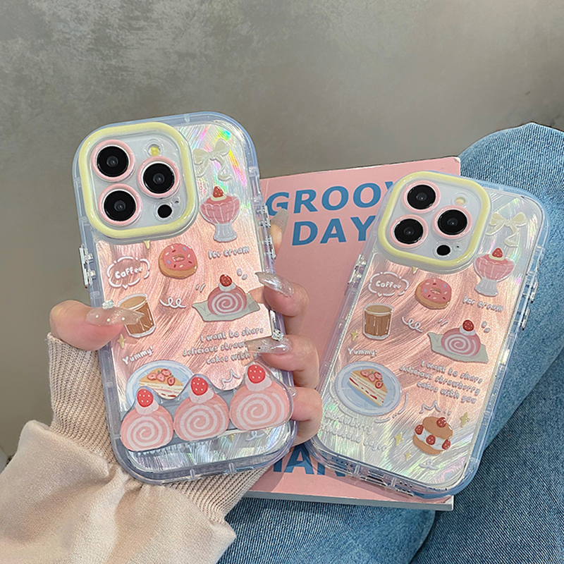 高级感渐变粉色羽纱草莓蛋糕适用苹果15promax手机壳iphone16pro带支架14新款13保护套max全包防摔12女款气质
