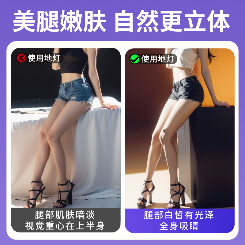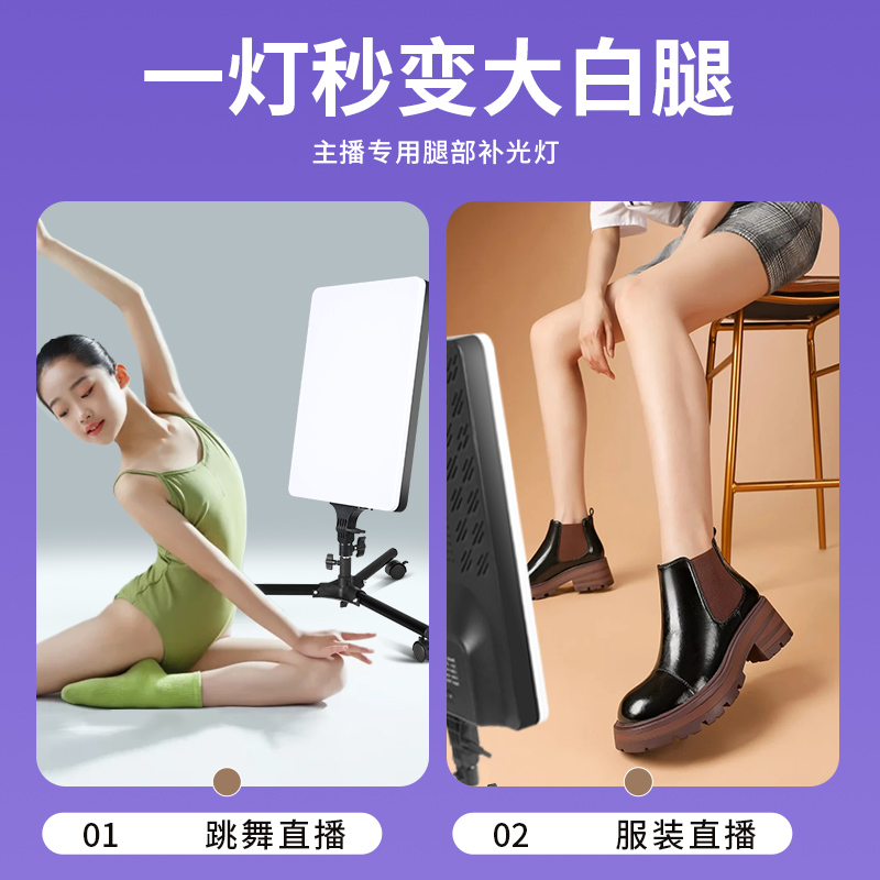 直播落地补光灯地灯主播跳舞专用美颜亮脚柔光美白腿部打光灯直播间腿灯影棚拍视频拍摄补亮灯方形平板摄影灯