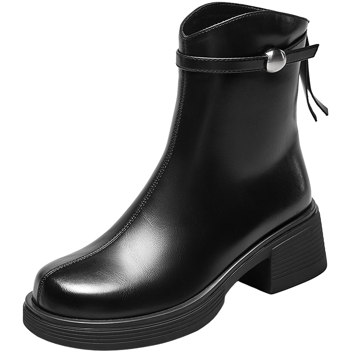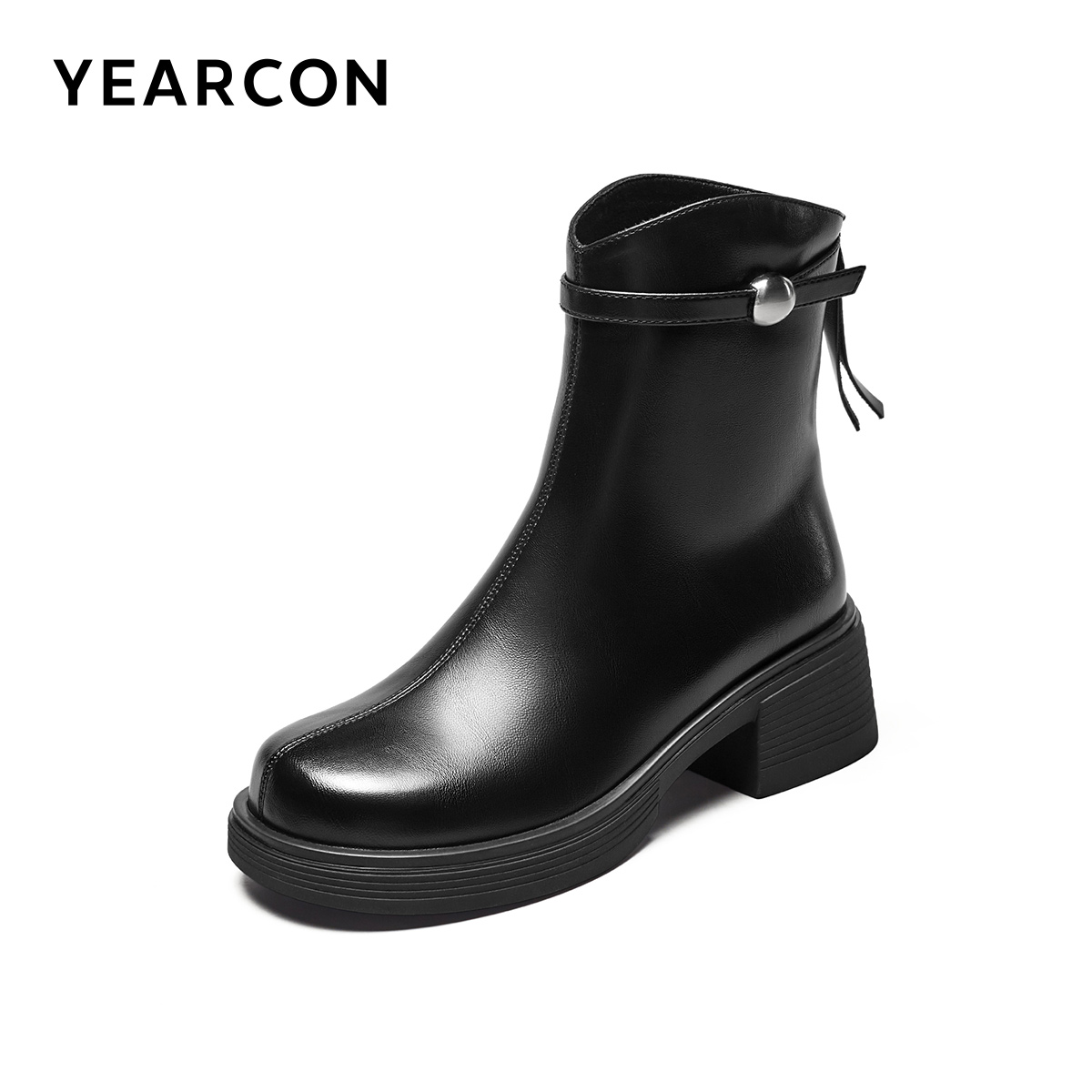 意尔康女鞋2025冬季短靴粗跟单靴气质英伦显瘦复古及踝靴女士皮鞋