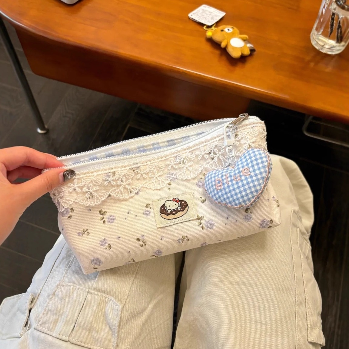 哈喽Kt碎花蕾丝笔袋简约大容量2025新款中小学生高颜值ins风小众