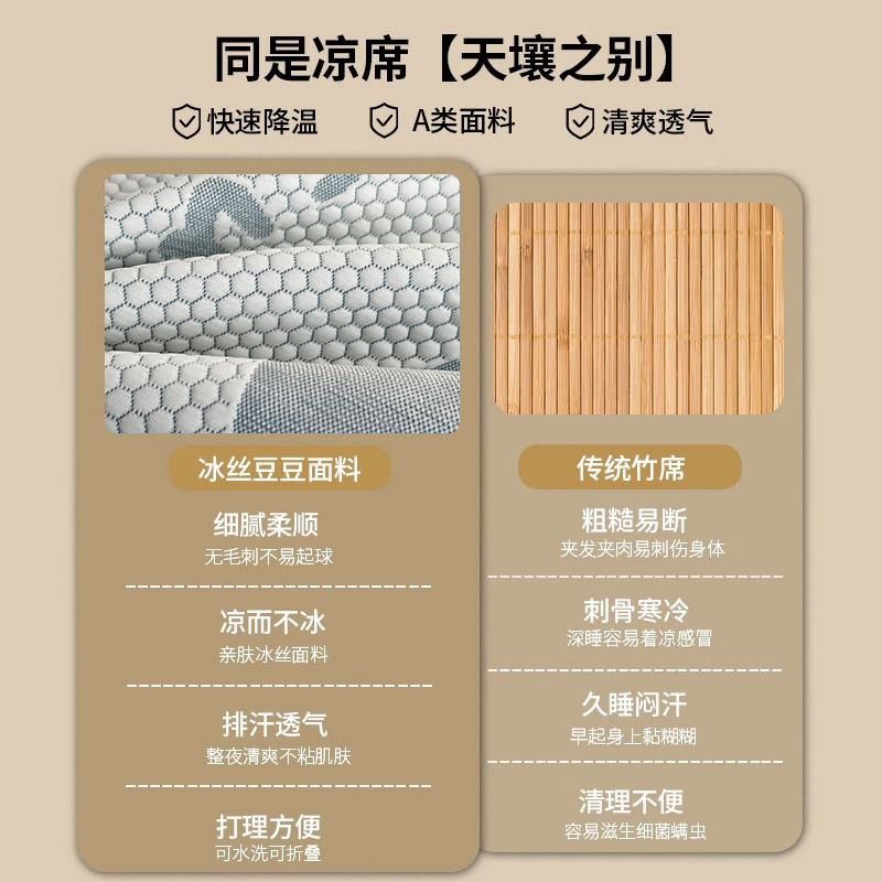 水星家纺凉感雪糕席5代可水洗凉席Q弹空调软席子A类裸睡床笠夏季