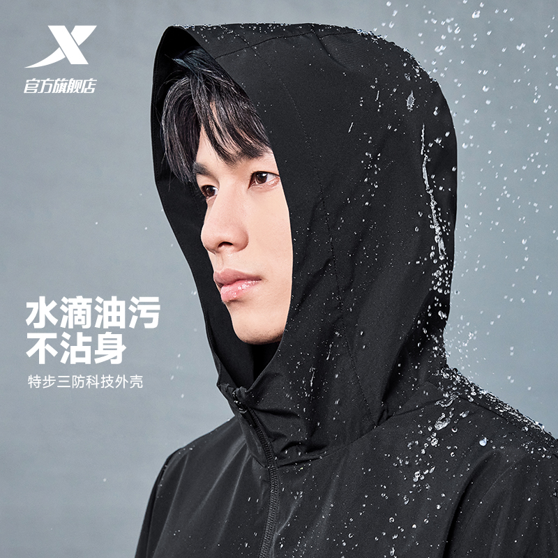 特步外套男士秋季新款冲锋男装休闲上衣男款运动加绒防风夹克风衣