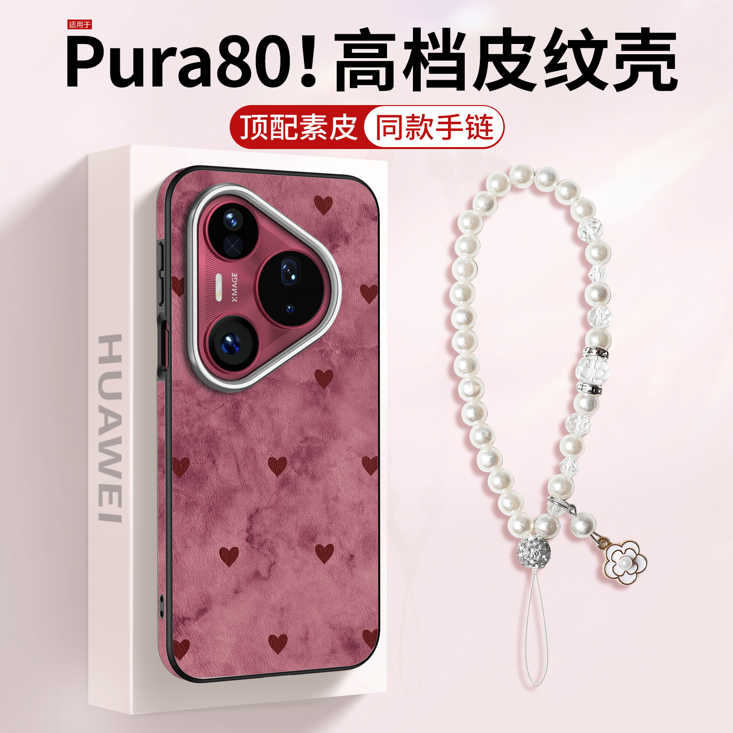 维泡适用华为Pura80pro手机壳新款高档素皮p80简约波点全包超薄por+防摔保护套ultra带挂绳pura外壳huawei女